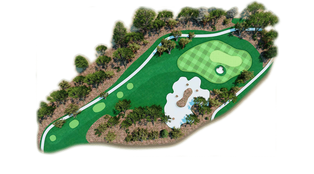 Set on a former pineapple plantation, the layout is sculpted across rolling hills and panoramic ridgelines, with commanding views that stretch all the way to the Gulf of Thailand. Each of the three nine-hole loops — Sugar Cane, Tapioca, and Pineapple — offers its own character, yet all share a common thread: sweeping elevation changes, deep bunkering, and a design that rewards the fearless.